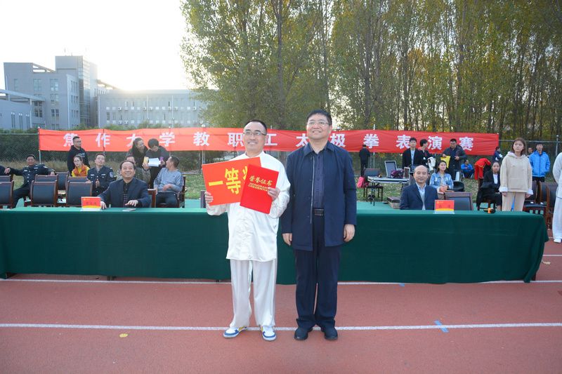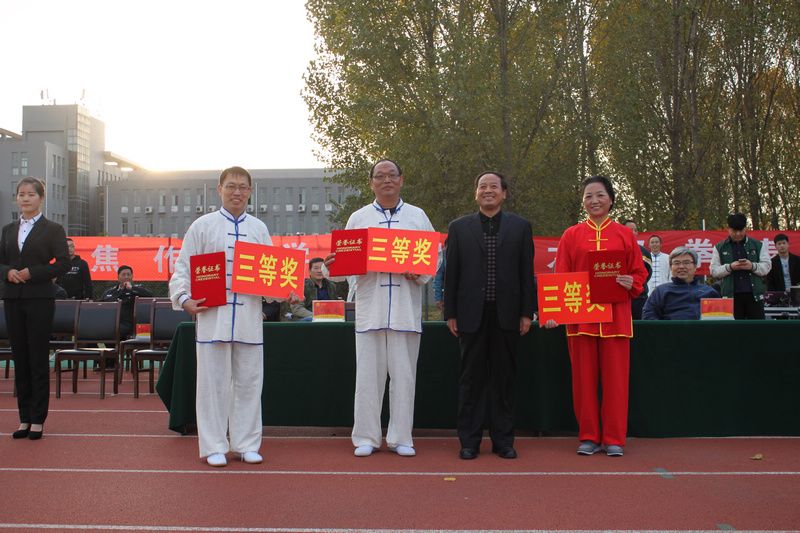 本次表演賽共有17支代表隊、570余名教職工參賽,另有太極武術學院和離退休教職工藝術團2支表演隊展演助興。經過激烈角逐,最終遠程教育學院分工會代表隊獲得一等獎;法政學院分工會、土建學院分工會代表隊獲得二等獎;外國語學院分工會、后勤管理處分工會、基礎科學系分工會代表隊獲得三等獎。校領導魏曰高、符德學、申文波分別為一、二、三等獎代表頒發了獲獎證書。