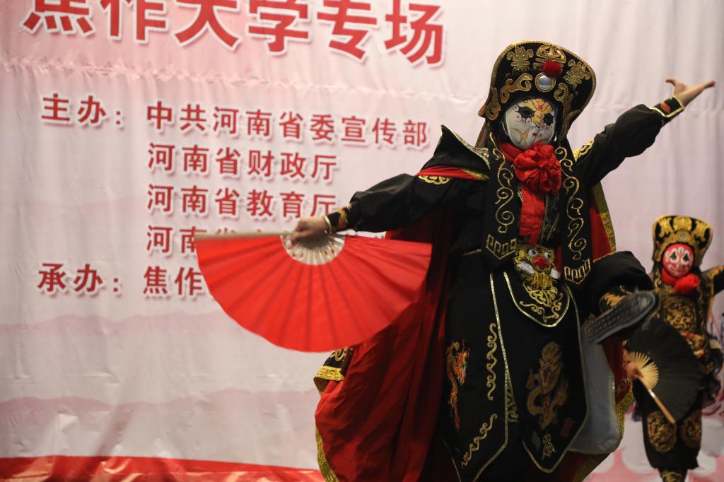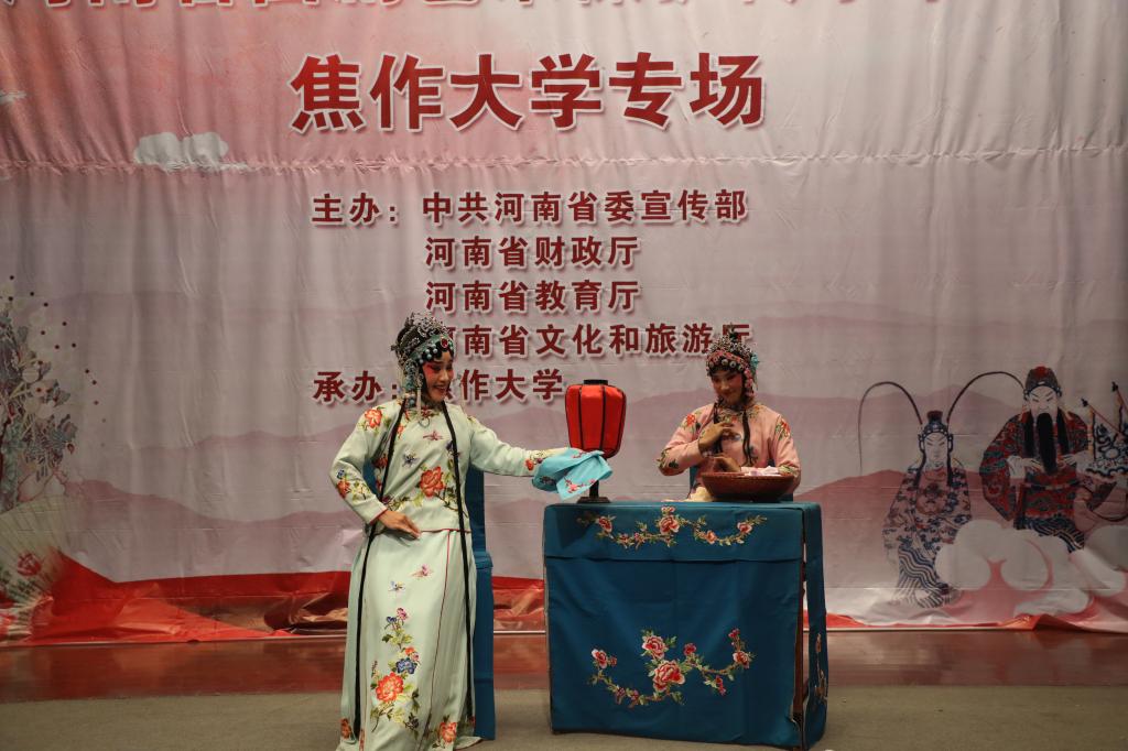 為弘揚(yáng)社會(huì)主義核心價(jià)值觀,培養(yǎng)青年學(xué)生對(duì)優(yōu)秀傳統(tǒng)文化的興趣,增強(qiáng)學(xué)生戲曲藝術(shù)素養(yǎng)和審美素養(yǎng)。根據(jù)《河南省教育廳 河南省文化和旅游廳聯(lián)合下發(fā)關(guān)于做好2019年“舞臺(tái)藝術(shù)送基層”活動(dòng)“戲曲進(jìn)校園”高校組演出工作的通知》(教體衛(wèi)藝〔2019〕210號(hào))文件精神, 6月1日,河南省2019年“戲曲進(jìn)校園”焦作大學(xué)專場(chǎng)演出活動(dòng)在南校區(qū)報(bào)告廳舉行。河南省曲劇藝術(shù)保護(hù)傳承中心的表演藝術(shù)家們?yōu)槲倚熒鷥A情奉獻(xiàn)了一場(chǎng)戲曲文化盛宴。我校300余名師生、退休教職工及戲曲愛好者共同觀看了演出。