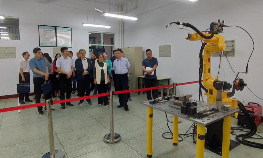 魏曰高一行,先視察了南校區3號教學樓的電工、電子、工業機器人、金屬工藝、焊接等實驗實訓室,并詳細詢問了實驗室、一體化教室的建設及使用情況,并提出下一步建設思路。
