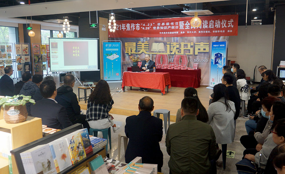 百年奮斗譜華章,讀書日里講黨史。4月23日是第26個世界讀書日,由市委宣傳部主辦,焦作大學、焦作日報社、市新華書店承辦的2021年焦作市“4·23”世界讀書日“4·26”世界知識產權日暨全民閱讀啟動儀式,23日上午在市新華書店舉行。