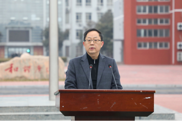 升國旗儀式后,汪詩懷、靳賢勝分別代表學校向師生講授了開學第一課,向全體師生致以新學期的問候,總結回顧了2023年學校事業發展取得的成績,并對全體師生提三點希望:一是要以堅韌執著的理想信念,以對黨和人民的赤膽忠心,把對黨和人民的忠誠和熱愛牢記在心中、落實在行動上,為黨和人民的事業奉獻終生,要經受得住坎坷和荊棘、考驗和危險、挫折和失敗,不斷嘗試和學習,直到成功。二是要勤于鍛煉,增強體質;修身養心,努力提高道德水平;善于學習,博覽群書;感恩黨和人民,感恩家人師長,感恩對自己有過幫助的人;師生和睦,同舟共濟,積極進取。三是要勇往直前,扎根祖國大地,面向世界、面向未來,腳踏實地、開拓創新;要朝氣蓬勃、敢打敢拼、熱愛生活、不負韶華。