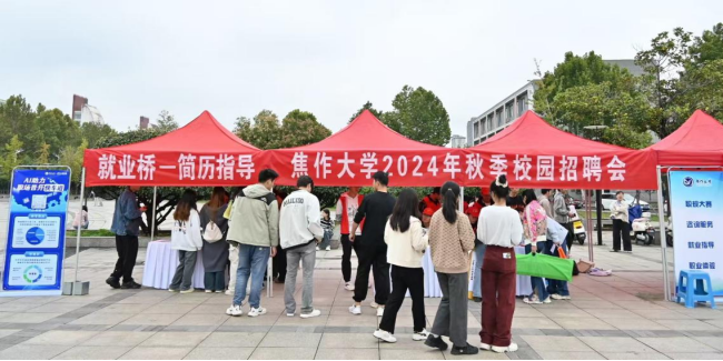 為深入貫徹黨的二十大和二十屆二中、三中全會精神,落實《中共中央國務(wù)院關(guān)于實施就業(yè)優(yōu)先戰(zhàn)略促進(jìn)高質(zhì)量充分就業(yè)的意見》文件精神,進(jìn)一步發(fā)揮高校校園招聘主渠道作用,大力拓展崗位資源,全力促進(jìn)畢業(yè)生實現(xiàn)高質(zhì)量充分就業(yè),焦作大學(xué)于10月18日在圖書館廣場舉辦2024年秋季校園招聘會暨“宏志助航”專場招聘會。焦作市山陽區(qū)委副書記、區(qū)長侯向陽,焦作大學(xué)黨委書記汪詩懷、副校長林鄧偉到招聘會現(xiàn)場指導(dǎo)調(diào)研工作。