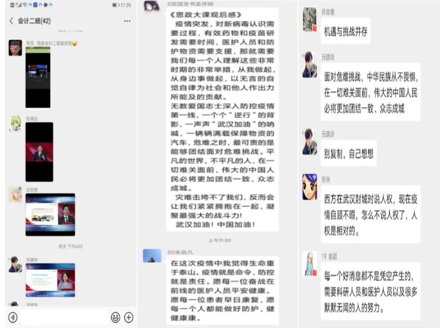 這堂90分鐘的思政課,充分發揮了高校思政課落實立德樹人根本任務的關鍵課程作用,四位教授將疫情防控工作涌現的案例轉化為鮮活課堂,既蘊含豐富的理論知識,又與新時代疫情防控的責任擔當緊密結合,引發了同學們線上的熱烈討論。