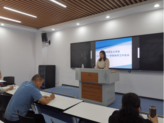 2023年8月28日下午,馬克思主義學院在紅色思政教室召開2023~2024年第一學期教學工作會議,學院領導班子及全體思政課教師參加。