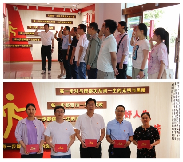 在教育基地講解員的引導下,大家參觀了圓夢奮進教育館、紀檢監(jiān)察史教育館、韓愈文化教育館、家風教育館、紅色(國防)教育管、警示教育館等展館。各展覽館展示了黨在各個歷史時期的廉政建設成果和反腐敗斗爭的歷程。大家認真聆聽講解,對黨的發(fā)展歷程和廉潔自律的重要性有了更加深刻的認識。隨后,全體黨員在學院黨總支副書記歐陽勝的帶領(lǐng)下面對黨旗進行莊嚴宣誓,重溫入黨誓詞,同時為王永軍、范俊玲等五位黨員集體過政治生日。